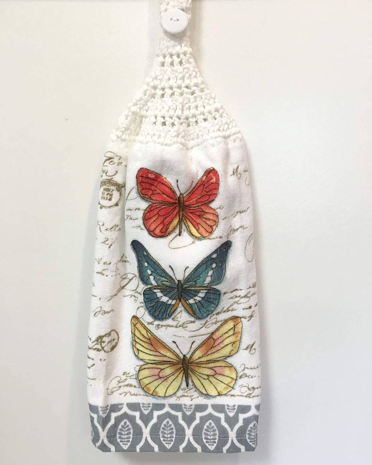 Amazon Com Butterfly Kitchen Hand Towel With Crochet Top Button